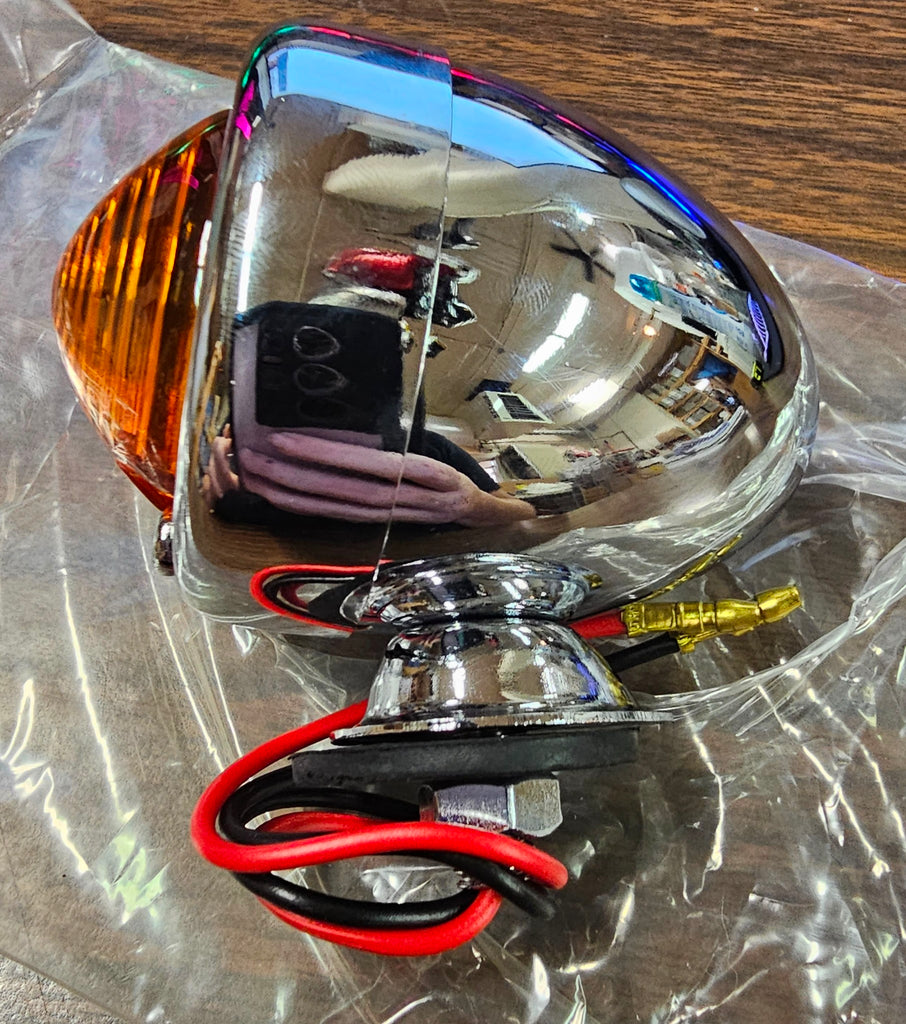 Dual Filament Amber 12 Volt Bullet Marker Light Chrome Bullet Style Turn Signal