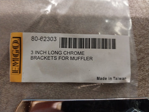 EMGO 80-62303 3" Long Chrome Brackets Muffler 1 Hole Honda Yamaha Suzuki Kawasak
