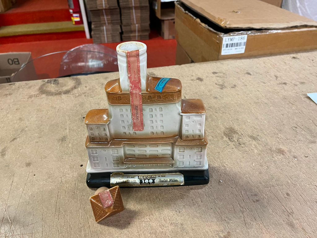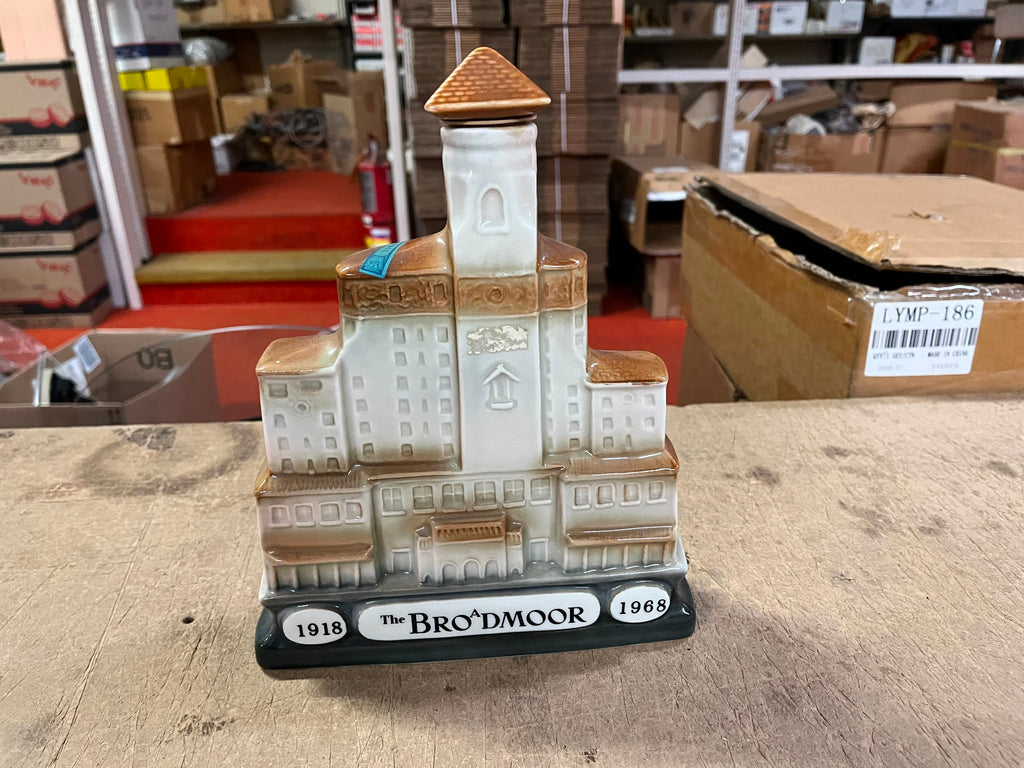 EMPTY VTG 1968 The Broadmoor Jim Beam Whiskey Decanter Bottle Barware Decor