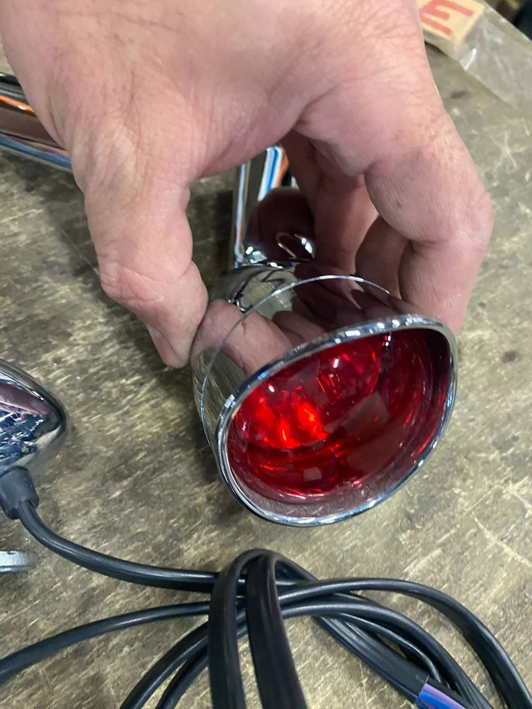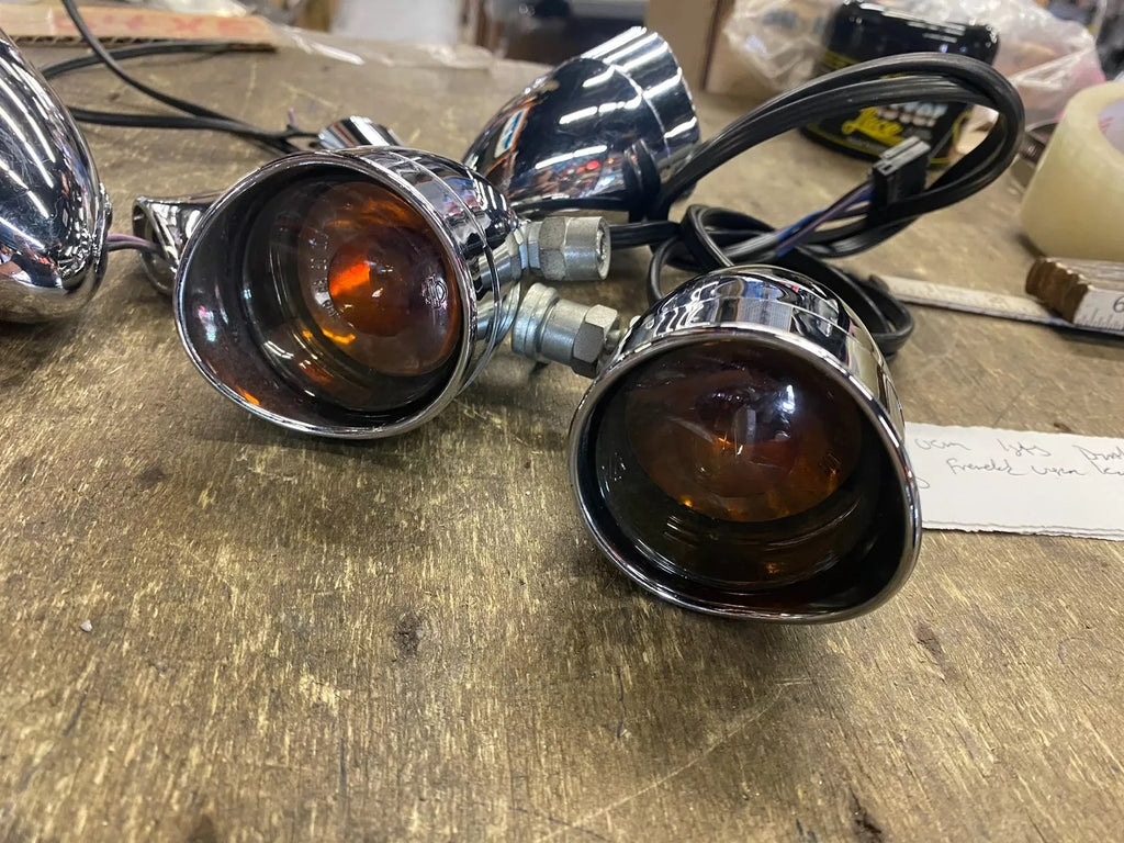Factory Turn Signal Set Assy Harley Dyna Sportster Softail Bullet Visors Wiring. The fronts still have plug on them,come with mounts as shown... one has some scratches on it, factory set off a Dyna. Should fit other models. Has Harley accessory visor rings on them.