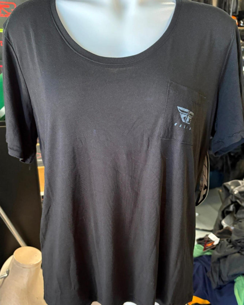 FLY RACING LADIES LARGE TSHIRT BLACK FLY RACING LOGO ON POCKET