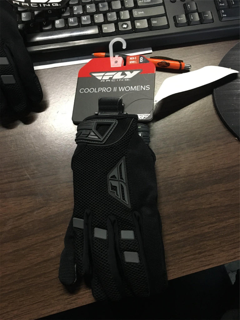 FLY RACING WOMEN'S COOLPRO GLOVES BLACK WOMENS LARGE MENS SMALL