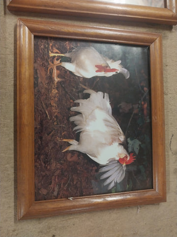 3 Regal Rooster Framed Pictures White Black 11.5"BY 9.5" Wall Decor