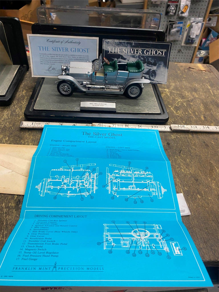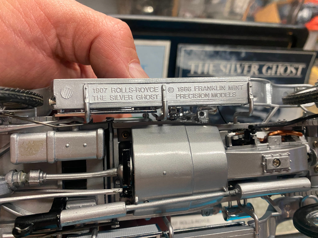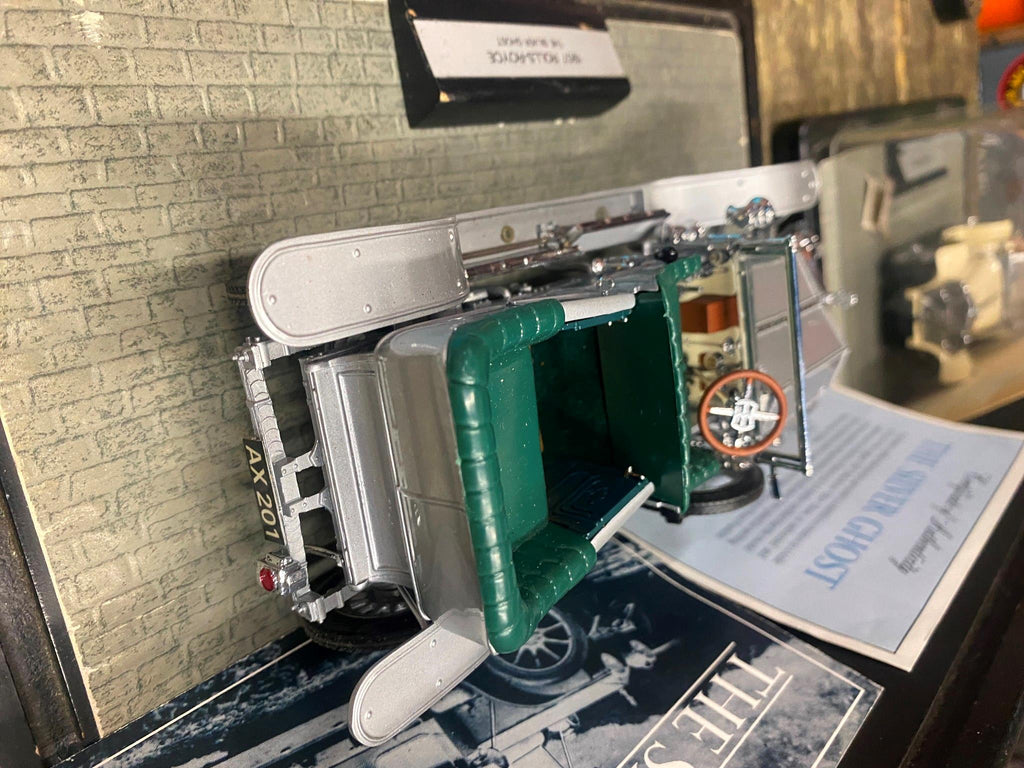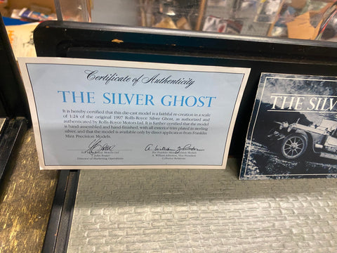Franklin MINT 1907 Rolls Royce Silver Ghost Diecast Model in 1:24 Die Cast Display Case super nice details comes with display case, papers of authenticity etc.... Great piece for the collector! back of display is loose could use a drop of glue Detail work is amazing!