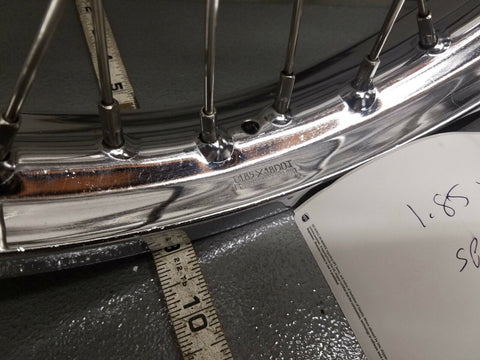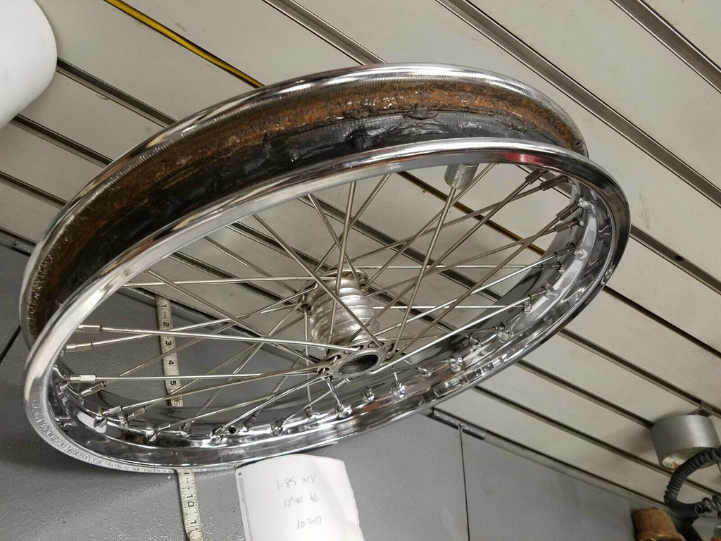 Front Spoke Wheel. Harley Honda Chopper Springer. Girder Spool Hub 1.85x18. Old School..... edge of hub is a little beat up... nice old piece...... chromes still nice!