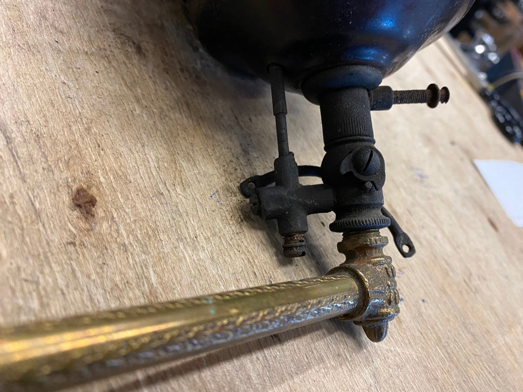 Gas Light Lamp Brass Sconce Victorian 1900's Globe Wall Antique Porcelain Nice! pretty fancy.. Would look great in any room, needs some shining up, have a couple of other styles... bought a few of these from an old timer, his dad collected them.... has to be really hard to find in this kind of shape!