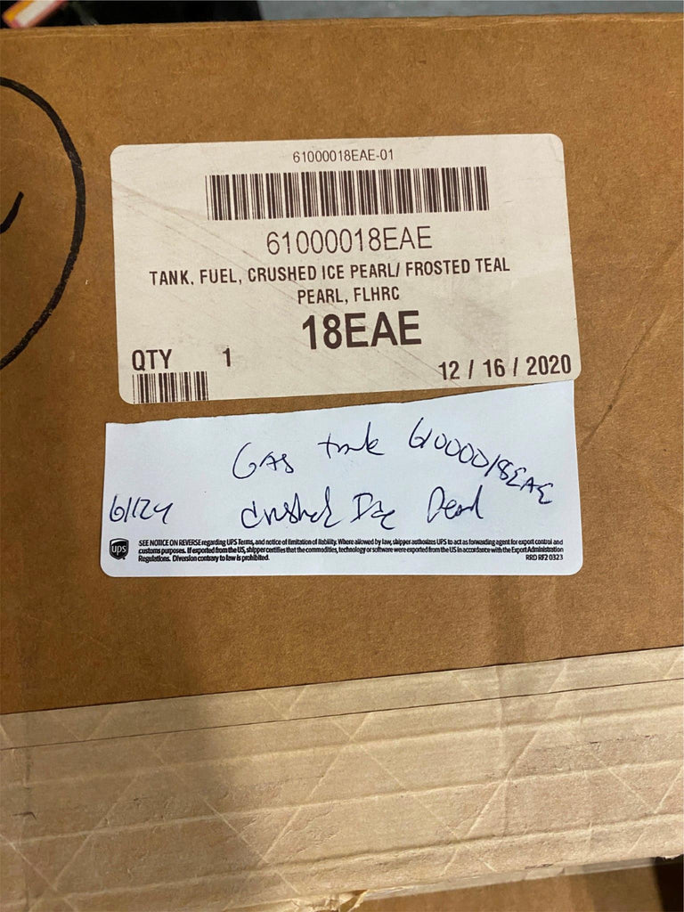 Gas Tank Crushed Ice Frosted Teal Pearl Harley FLHRC Road King Classic 2016 fits 2008 up models.... Love this color combo!!!  Nice tank, few smalls......with emblems!  halrey part # 61000018EAE