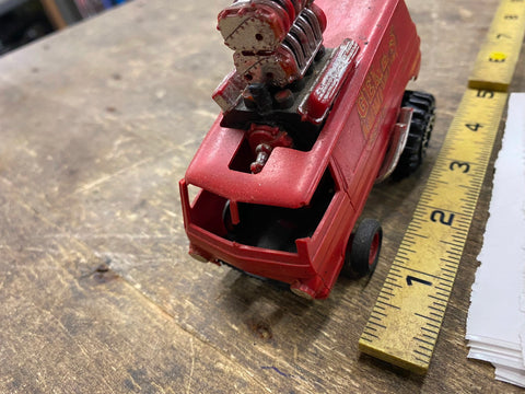 genes moving vans model hot rod Dual 671 blower Hot Rod Vtg Chevy Dodge ford right out of the 60's. Came with some old eddy roth models... just thought it was neat... put some back wheel on it... needs some work.. was on our counter for years!