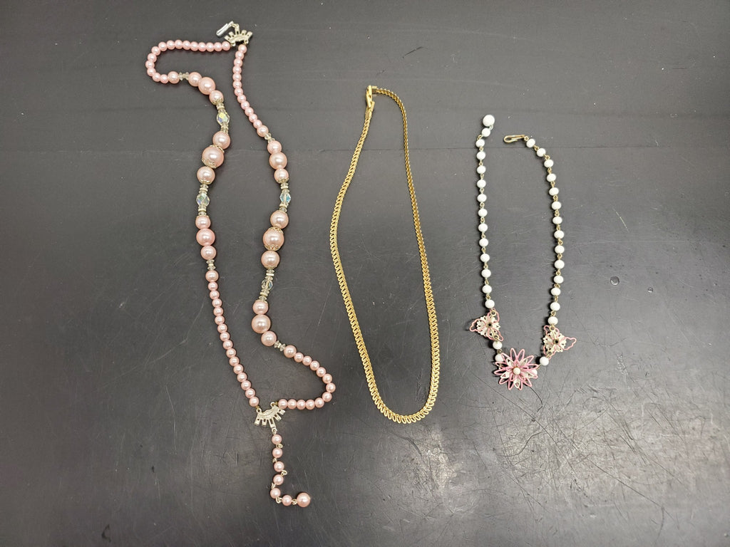 Gorgeous Lot of 3 Women's Necklaces Faux Gold , Pearl , Flower Pendant . Classy . Present .