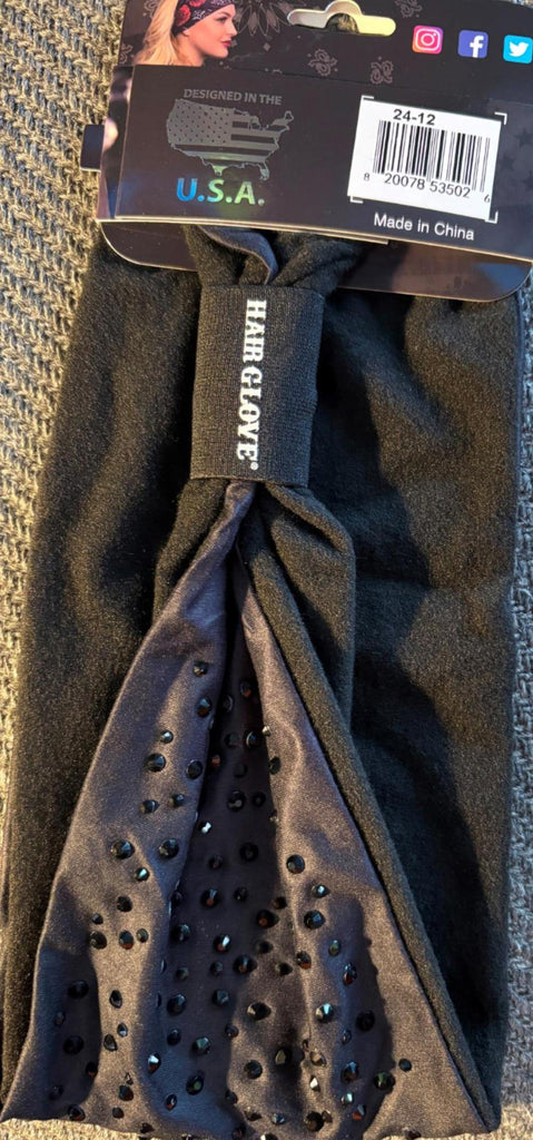 HAIR GLOVE EZ BANDZ WINTER WEIGHT BLACK "ORANGE SKULL BLING" BIKER HEADBAND