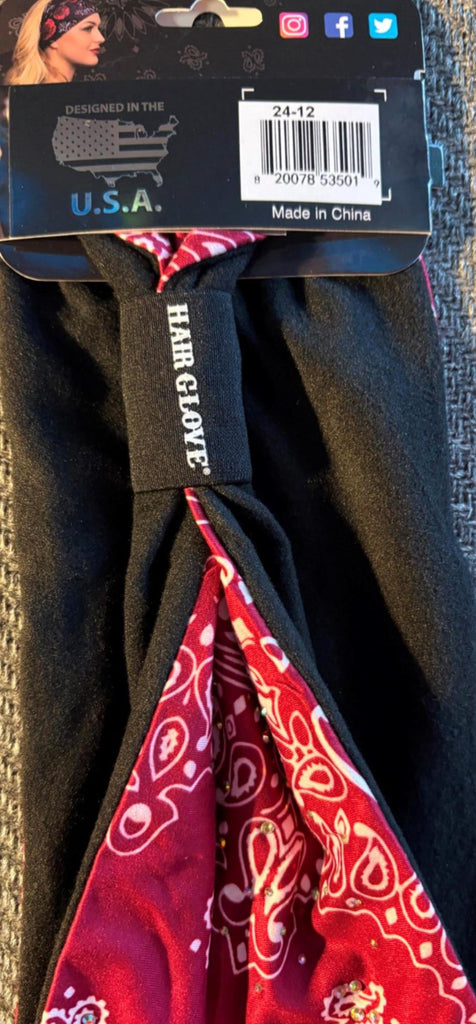 HAIR GLOVE EZ BANDZ WINTER WEIGHT BURGUNDY "PAISLEY PRINT BLING" BIKER HEADBAND