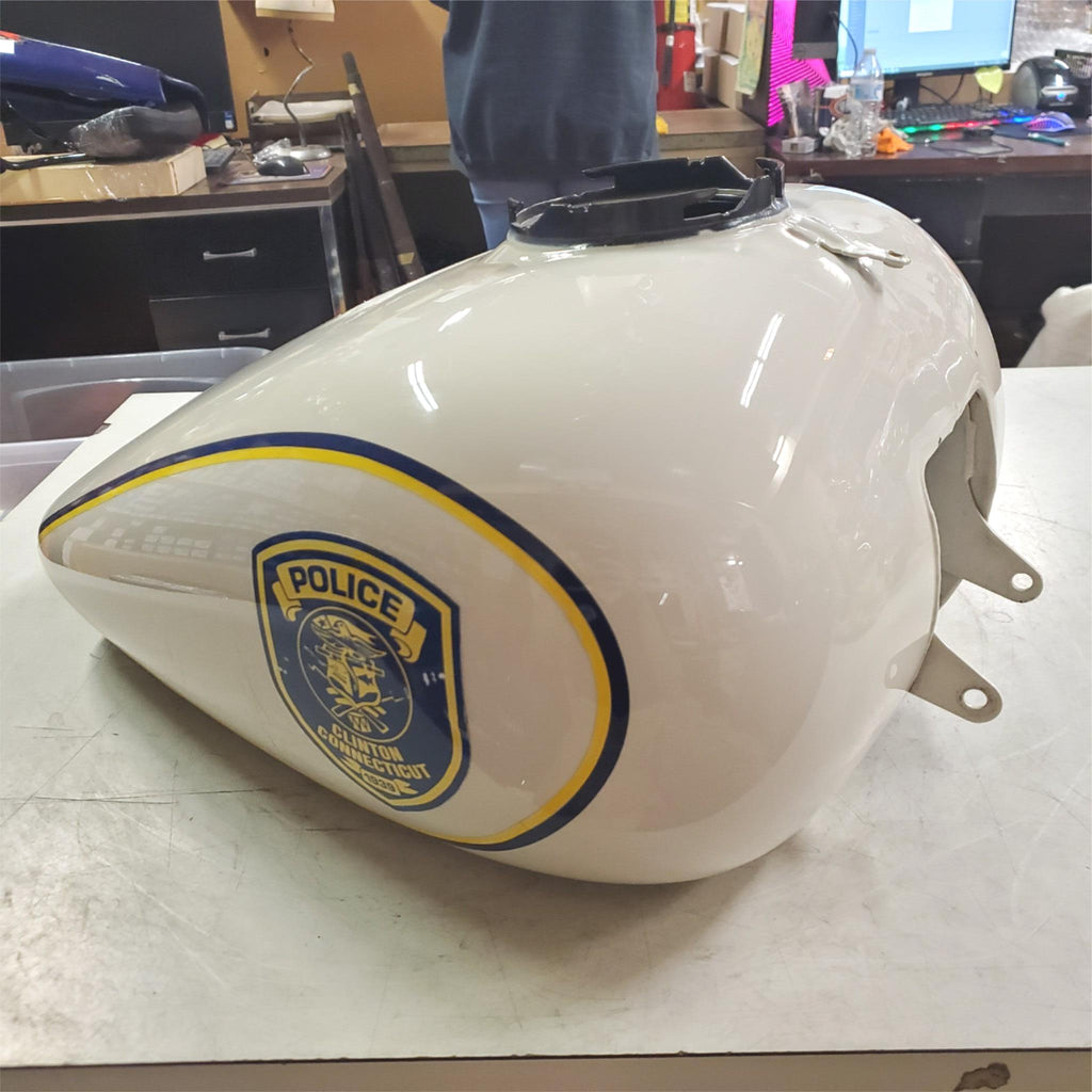 Harley 2008 FLHTPI Electra Glide Standard Police Clinton Connection Birch White Fuel Tank.