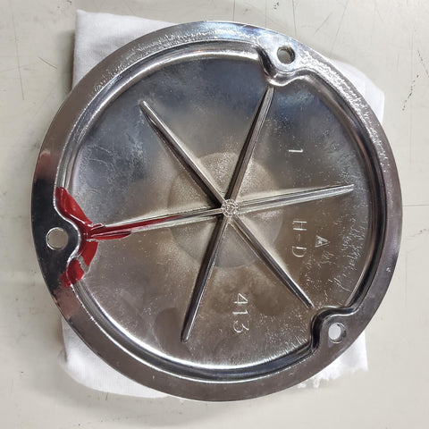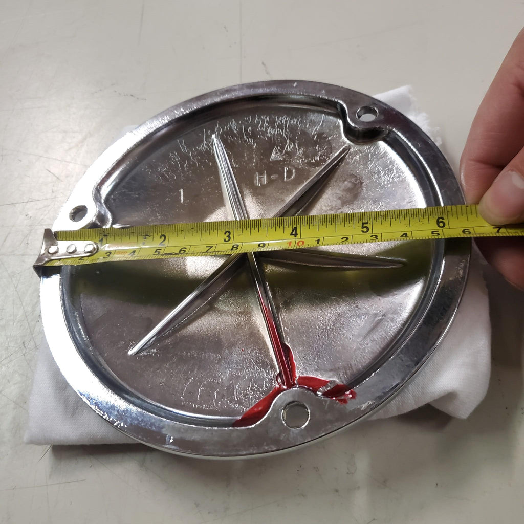 Harley 6 1/4" Chrome Primary Domed Derby cover 3 hole Bolt 1970-1997. Heavy Duty.