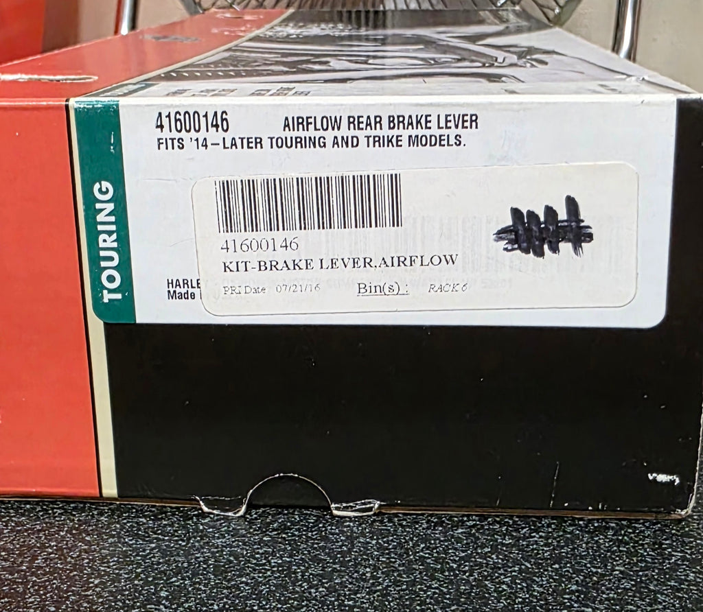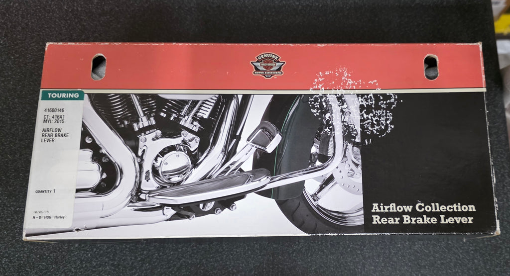 Harley-Davidson part number 41600146 corresponds to the Chrome Airflow Rear Brake Lever.