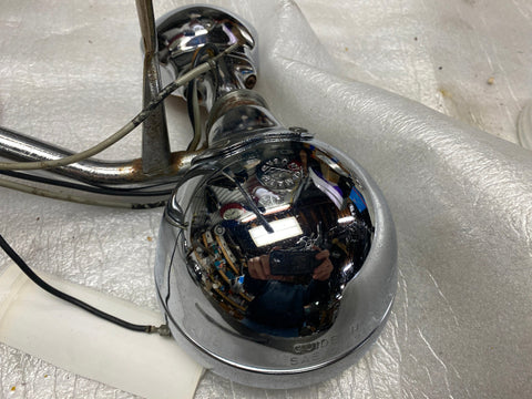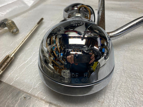 OEM Passing Lamp Spotlights Harley FLH Guide -62 Panhead Shovelhead Assy Factory spotlamps are in nice shape, some rust on bar & clamps