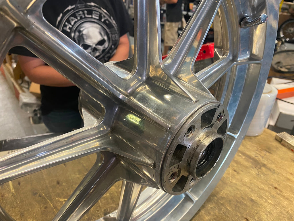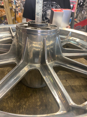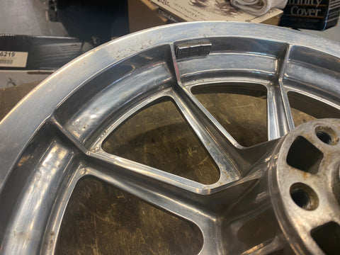 Polished Rear Mag Wheel Sportster Dyna 3/4 3.00x16 Stock Harley FXR FXD 1984-99 customer said he sanded & polished by hand... took about 80 hours.... needs a quick shine again!! never seen anyone do that before!!!