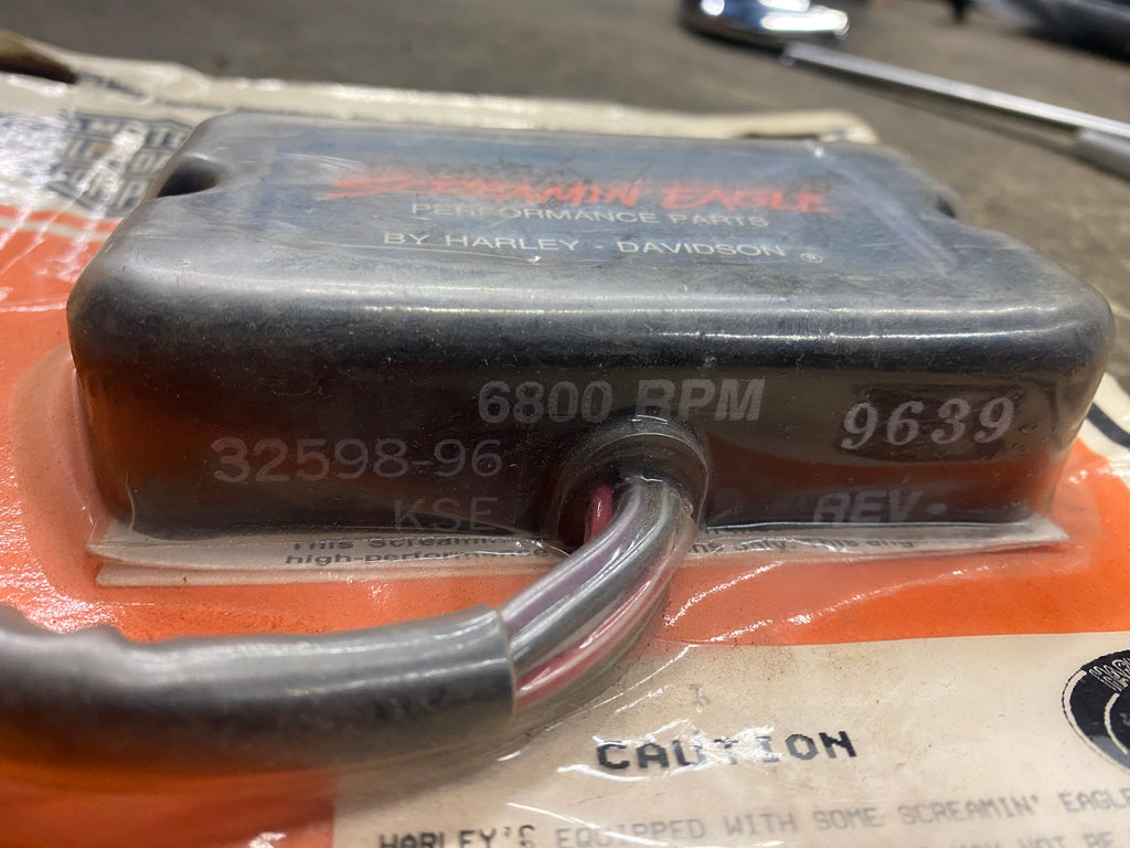 Harley-Davidson part number 32598-96 is a Screamin' Eagle ignition module with a 6800 RPM rev limiter.
