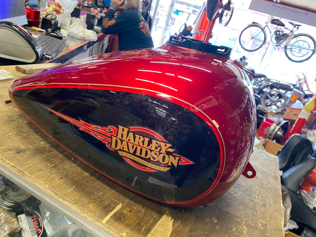 Two Tone Red Gas tank Harley Ultra classic 2008^ Bagger FLH Mysterious Sunglo? nice tank, nice paint... told it was off a 2013 not sure of color names.... could uses a buff job jet some smudges out.... Gas tank Harley Electra Glide classic 2013 FLH Ember Red Sunglo merlot 2 tone