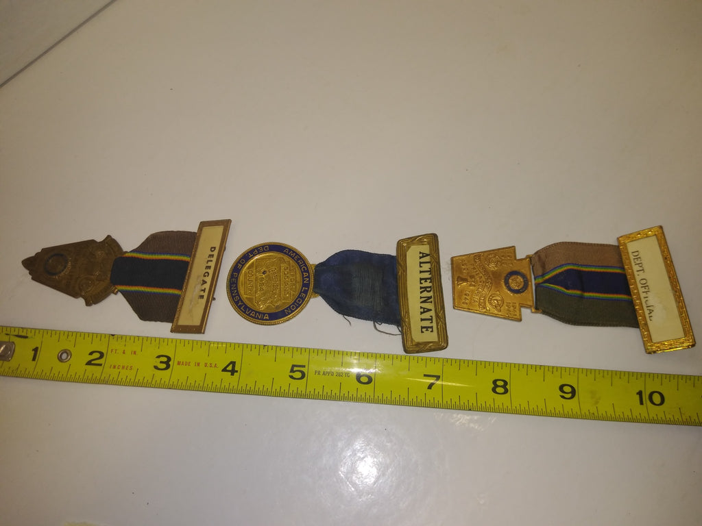 VTG 3Pc American Legion Medal Ribbon Military Delegat Philadelphia Greensburg Pa
