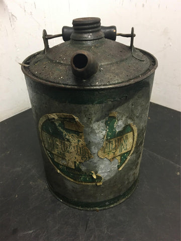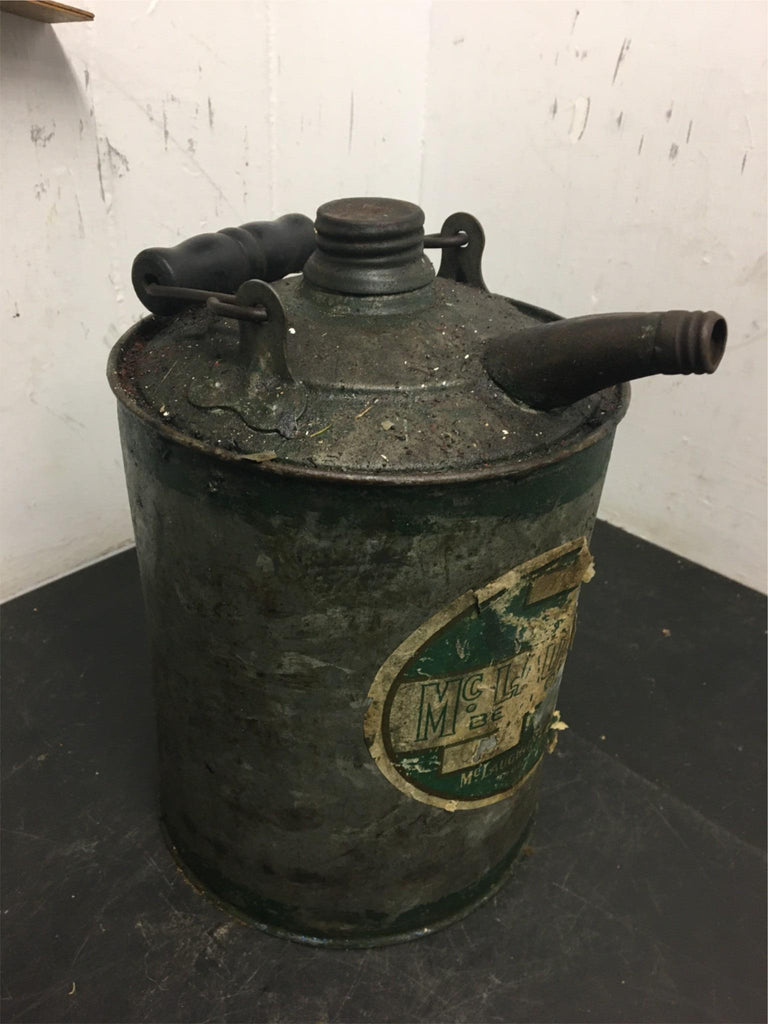 Vintage Gas Can Galvanized McLaughlin Brockport wooden handle antique 1 gallon can.