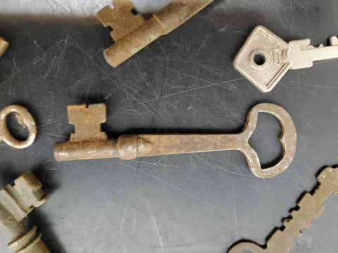 VINTAGE KEYS LOT OF 46 ANTIQUE SKELETON KEYS, BARREL, CABINET, LOCK, STEAMPUNK!