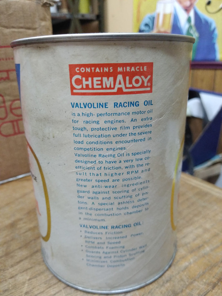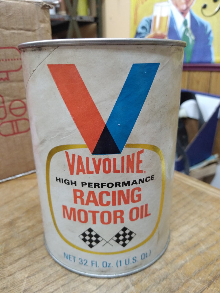***PLEASE LOOK AT ALL THE PICTURES AND ASK QUESTIONS BEFORE BUYING*** This is an emptyVintage 1 Quart Valvoline High Performance Racing Motor Oil Paper Can, SAE 20W- 50 with Checkered Flags.****** The pictures are a substantial part of the description so please examine all the photos and contact me if you have any questions. We will be happy to save you shipping costs by picking this up at our shop. Thanks for looking. 111723- RK-05