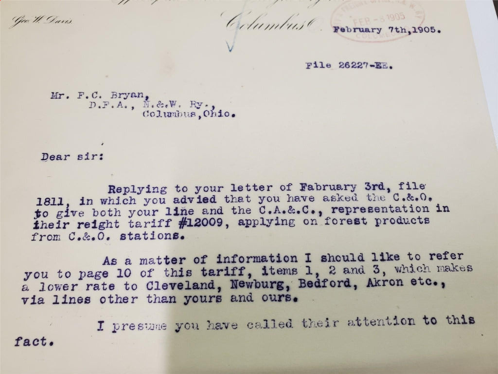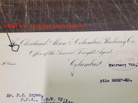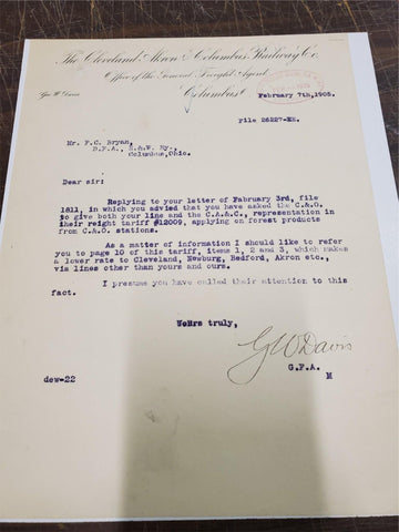 Vtg 1905 Cleveland Akron & Columbus Railway Office General Freight Agent Letter
