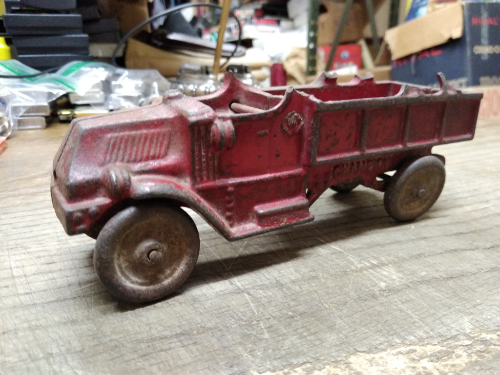 ***PLEASE LOOK AT ALL THE PICTURES AND ASK QUESTIONS BEFORE BIDDING*** This is a Vintage 1930's Champion Cast Iron Red Toy Delivery Truck Steel Wheels Parts/Repair *** The pictures are a substantial part of the description so please examine all the photos and contact me if you have any questions. We will be happy to save you shipping costs by picking this up at our shop. Thank You 090225-01-RK