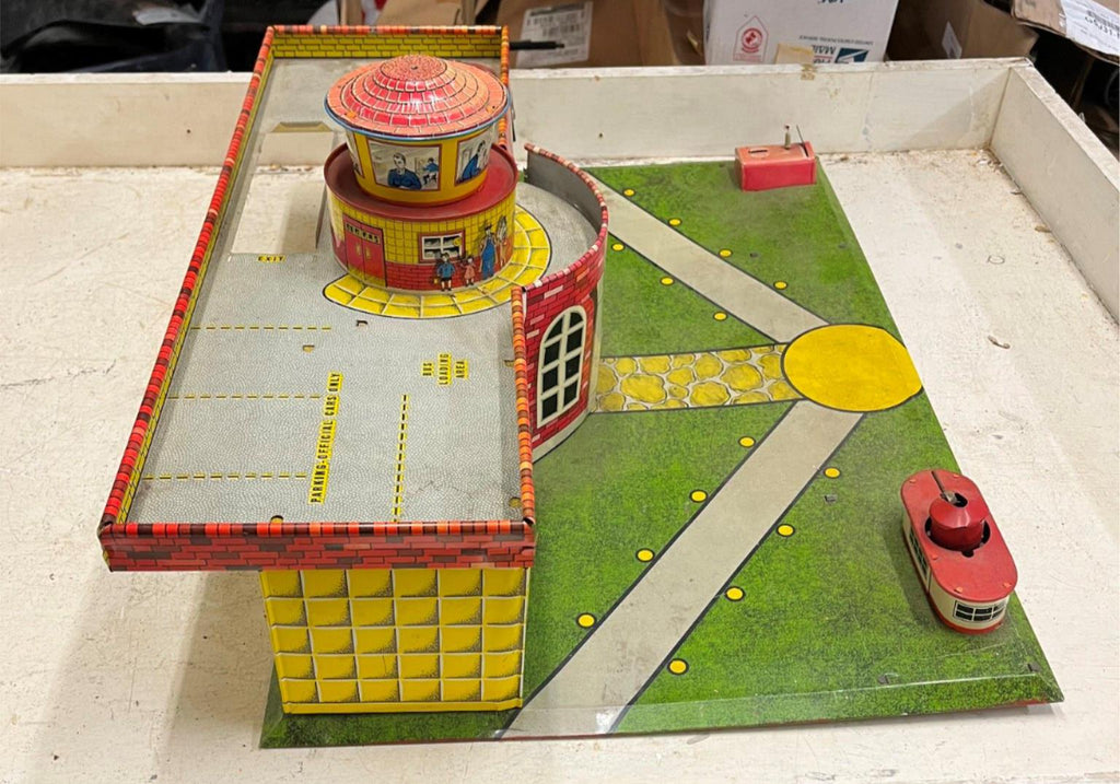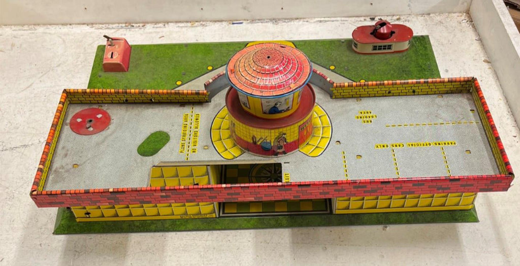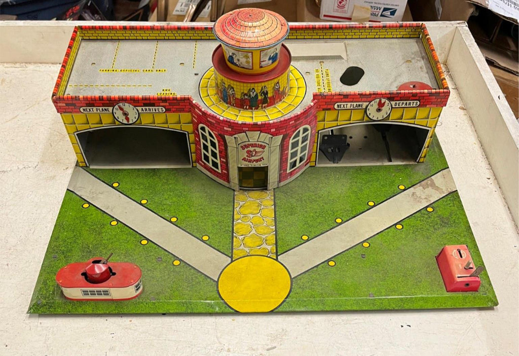 vtg 1950s Tinplate superior Airport by Mettoy playset Airplane Hanger