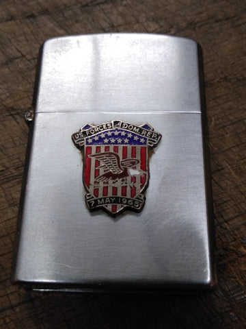 ***PLEASE LOOK AT ALL THE PICTURES AND ASK QUESTIONS BEFORE BIDDING*** Vintage1965 CREST CRAFT US Forces Dominica Republic Commie War Cigaret Lighter Military great piece of history!! us didnt want the communists to take over dominican republic like they did cuba.... war that never really happened!!!!