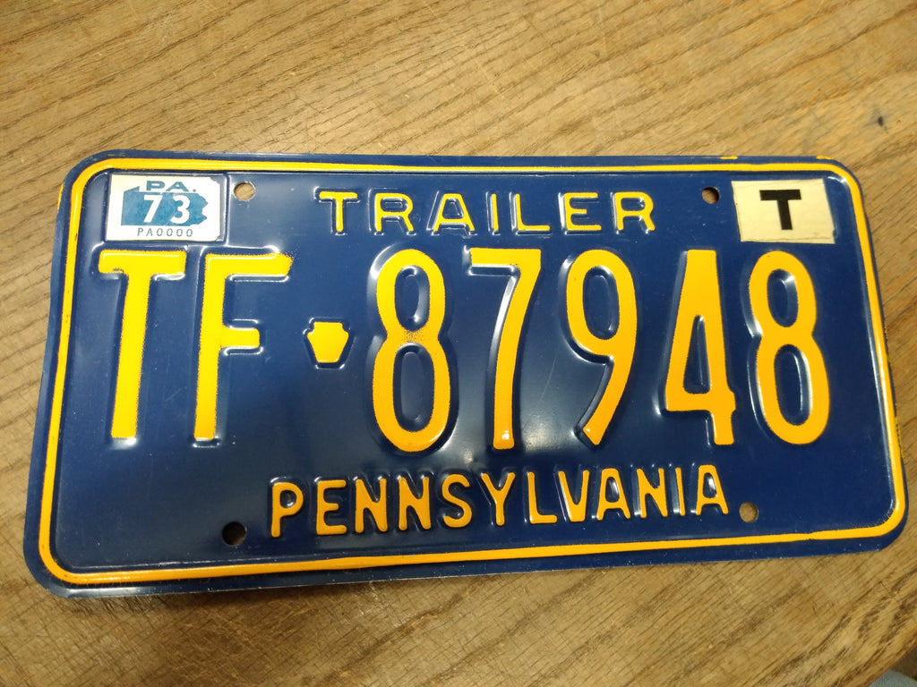 This is a Vintage 1973 Pennsylvania Trailer License Plate TF 87948 in Nice Shape! *** Selling as pictured as is. The pictures are a substantial part of the description so please examine all the photos and contact me if you have any questions. We will be happy to save you shipping costs by picking this up at our shop. Thanks for looking. 042624- RK-09