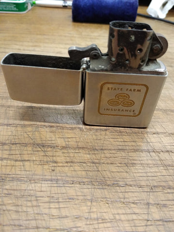 This is a Vintage 1974-1975 Zippo Cigarette Lighter State Farm Insurance Brushed Chrome USA, Good Original Condition!