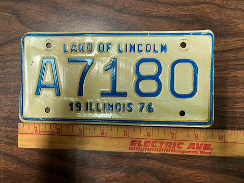 VTG 1976 Land of Lincoln Illinois Motorcycle License Plate A7180