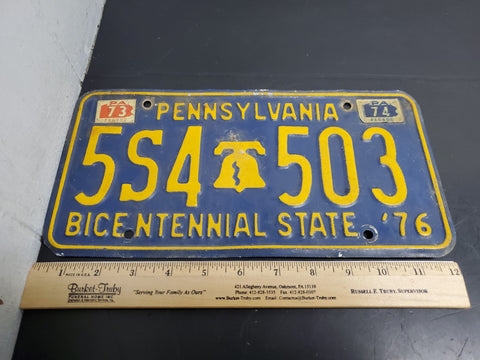 Vtg 1976 Pennsylvania License Plate 5S4-503 Bicentennial State Automobile Collectible