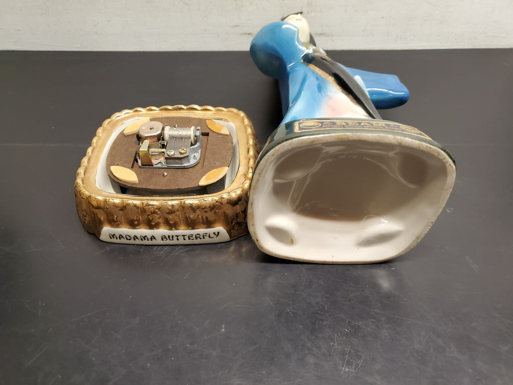 Vtg EMPTY 1977 Jim Beam Madam Butterfly China Decanter W/Music Box Works Classy