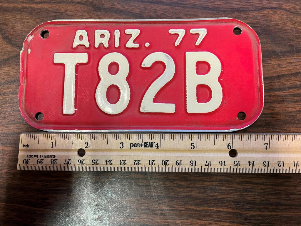 VTG 1977 State of Arizona Motorcycle License Plate T82B Original