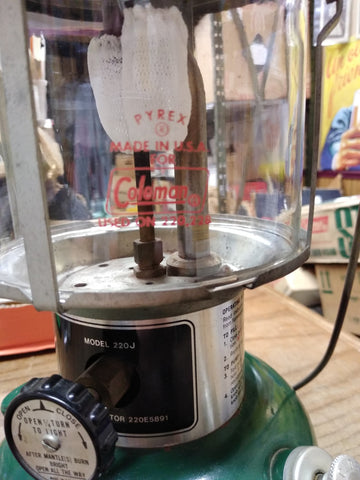 ***PLEASE LOOK AT ALL THE PICTURES AND ASK QUESTIONS BEFORE BIDDING*** This is a Vintage 1978 Green Coleman Double Mantle Gas Camp Lantern Model 220J Good Shape! *** The pictures are a substantial part of the description so please examine all the photos and contact me if you have any questions. We will be happy to save you shipping costs by picking this up at our shop. Thank You  080725- RK-20