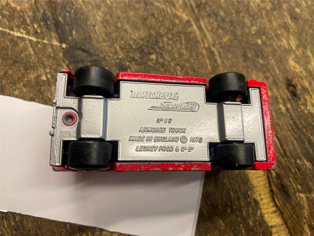 Vtg 1978 Matchbox Armored Truck wells fargo Red no 69    have a bunch of hot wheels & matchbox toys listed!