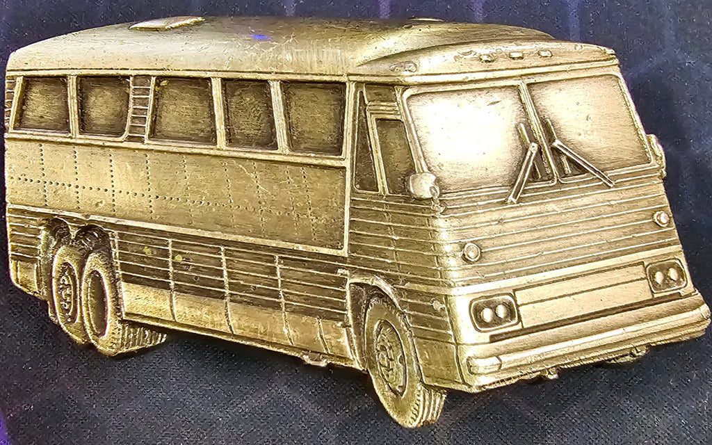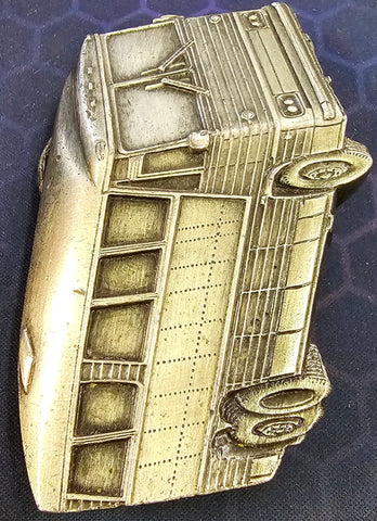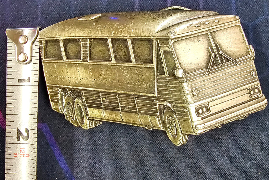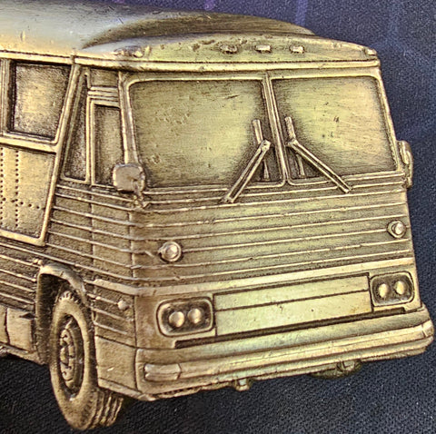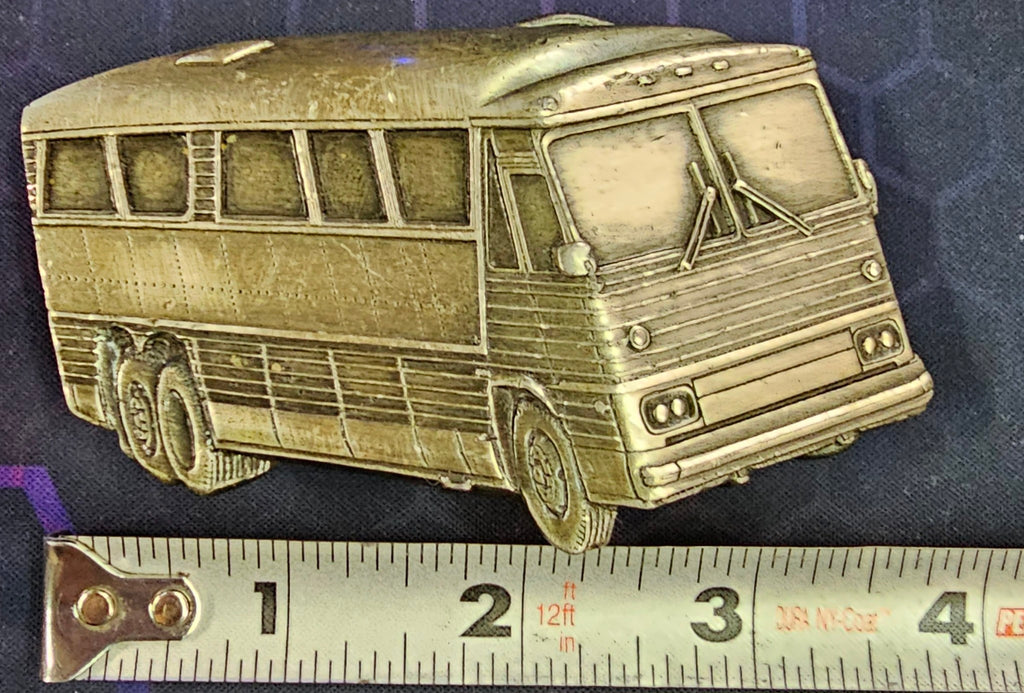 VTG 1978 Pewter Bergamot Brass Works City Bus Belt Buckle Made in USA Advertising