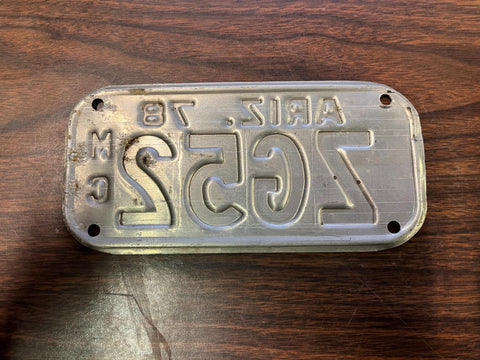 VTG 1978 State of Arizona Motorcycle License Plate ZG52 Original