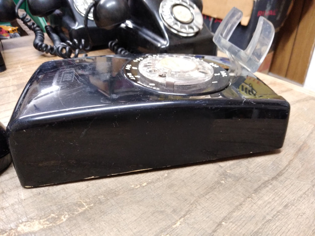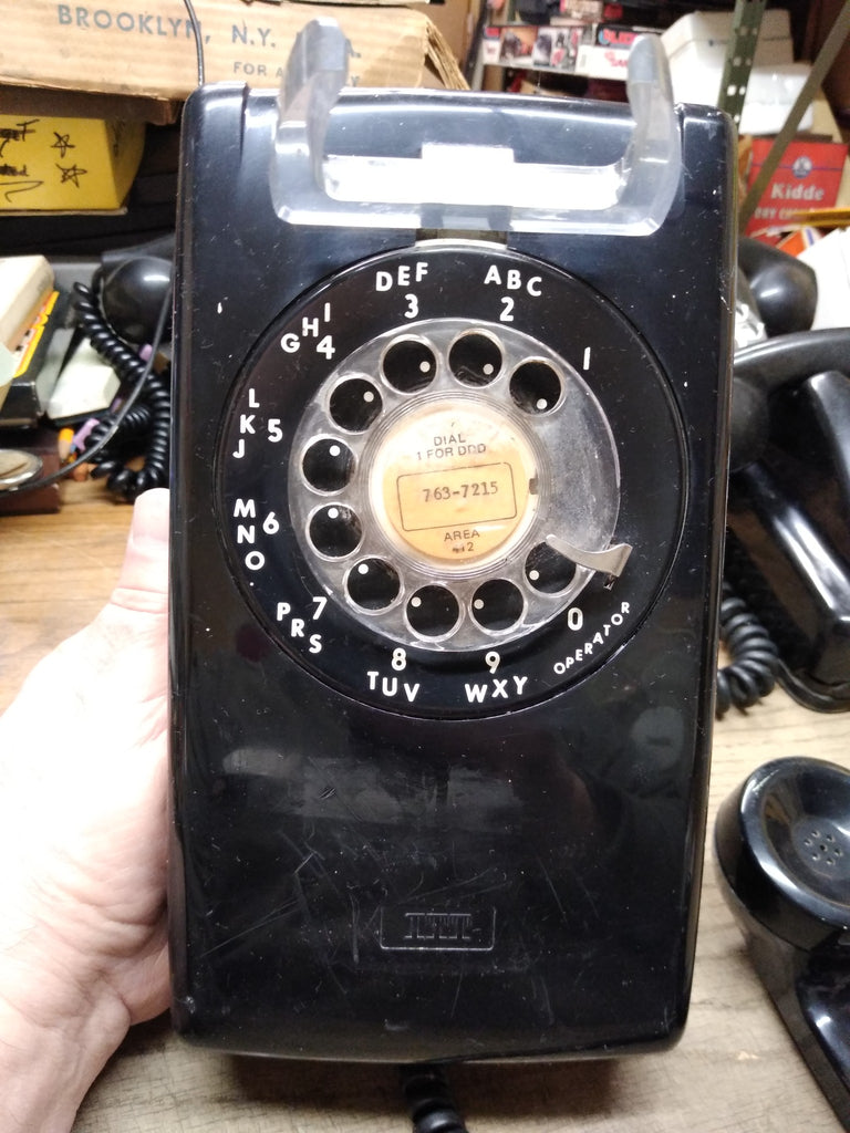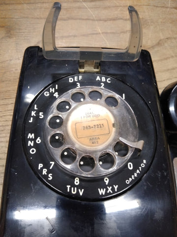 This is a Vintage 1981 ITT Wall Mount Black Rotary Dial Telephone, Model 554, Dial Works.   *** The pictures are a substantial part of the description so please examine all the photos and contact me if you have any questions. We will be happy to save you shipping costs by picking this up at our shop. Thank You  032725- RK-02