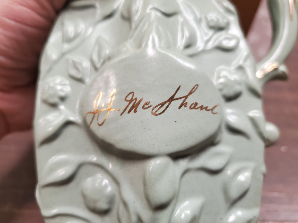 Vtg EMPTY 1982 Jim Beam Green J.J. McShane Embossed Liquor Decanter Regal China