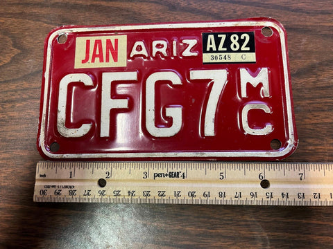 VTG 1982 State of Arizona Motorcycle License Plate CFG7 Original