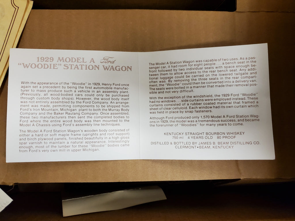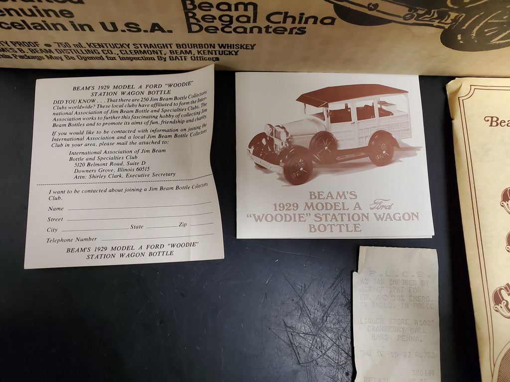 Vtg EMPTY 1983 Beam's 1929 Model A Ford "Woodie" Station Wagon Decanter NIB Orig. Rcpt.