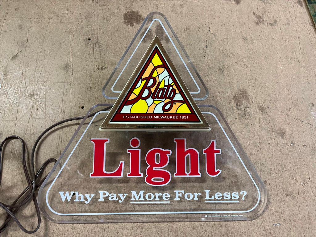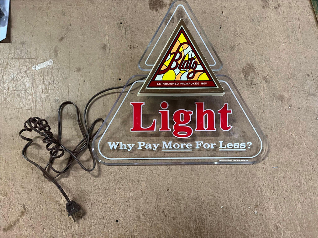 VTG 1983 Made In USA Blatz Why Pay More For Less Lighted Advertising Sign
