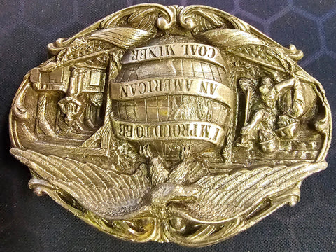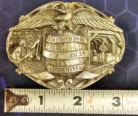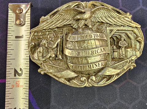 VTG 1986 Bergamot Brass Works "Proud To Be An American Coal Miner" Belt Buckle