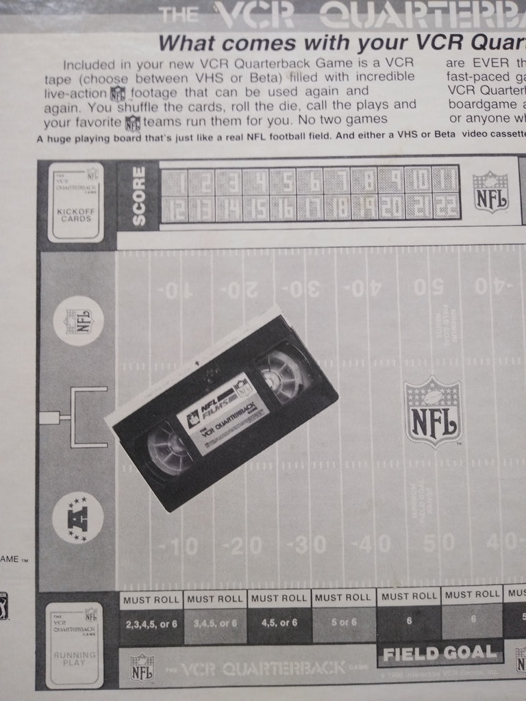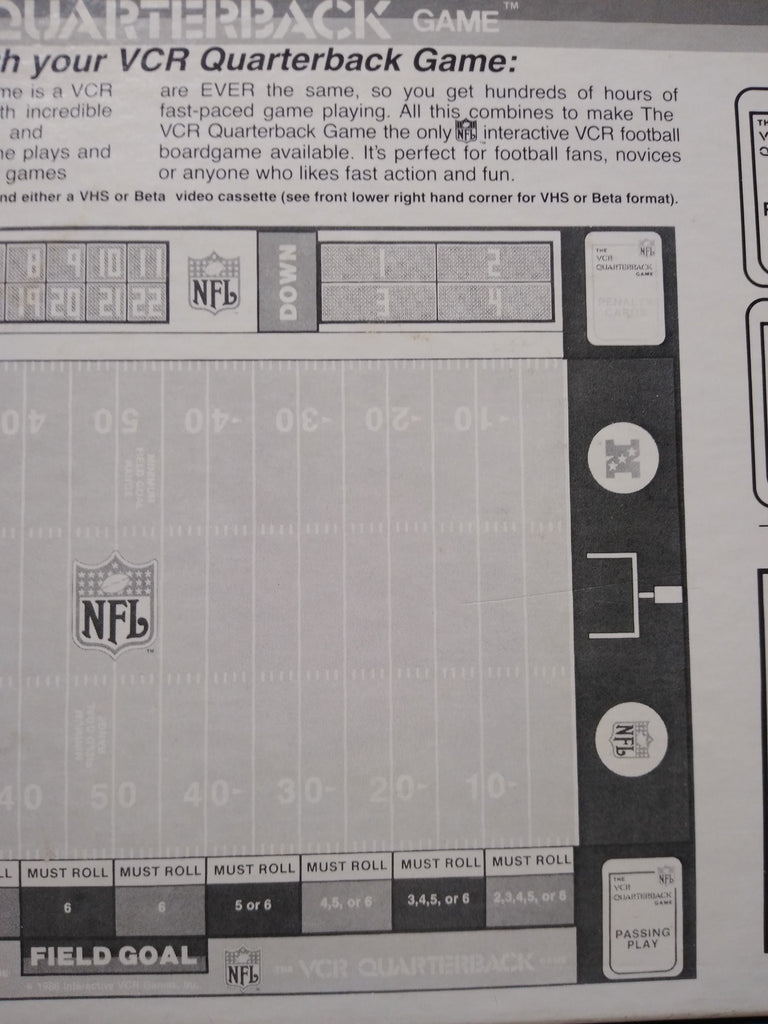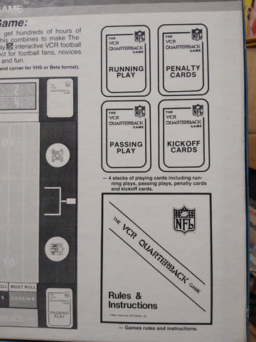 This is a Vintage 1986 The VCR Quarterback NFL Board Game Interactive VCR Rules Great Shape!! *** The pictures are a substantial part of the description so please examine all the photos and contact me if you have any questions. We will be happy to save you shipping costs by picking this up at our shop. Thank You 020425- RK-07