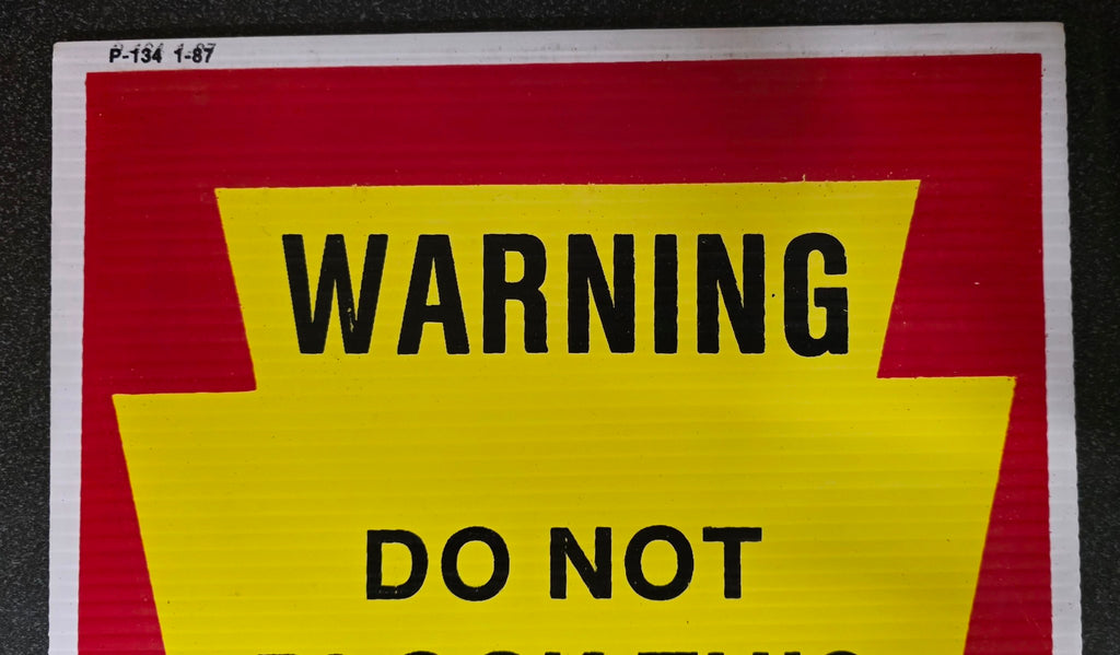 plastic warning sign issued by the Pennsylvania Game Commission. The sign, shaped like a keystone