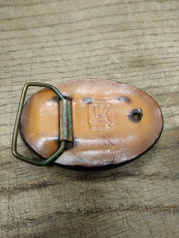 ***PLEASE LOOK AT ALL THE PICTURES AND ASK QUESTIONS BEFORE BUYING*** This is a Vintage 1987 Stamped Oval Fireman Saving Girl Leather Belt Buckle 3.25", Nice Shape!  The pictures are a substantial part of the description so please examine all the photos and contact me if you have any questions. We will be happy to save you shipping costs by picking this up at our shop. Thank You    082924- RK-08