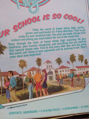 ***PLEASE LOOK AT ALL THE PICTURES AND ASK QUESTIONS BEFORE BIDDING*** This is a Vintage 1988 Francine Pascal's SWEET VALLEY HIGH Board Dream Date Game Complete Box! *** The pictures are a substantial part of the description so please examine all the photos and contact me if you have any questions. We will be happy to save you shipping costs by picking this up at our shop. Thank You 071725- RK-01